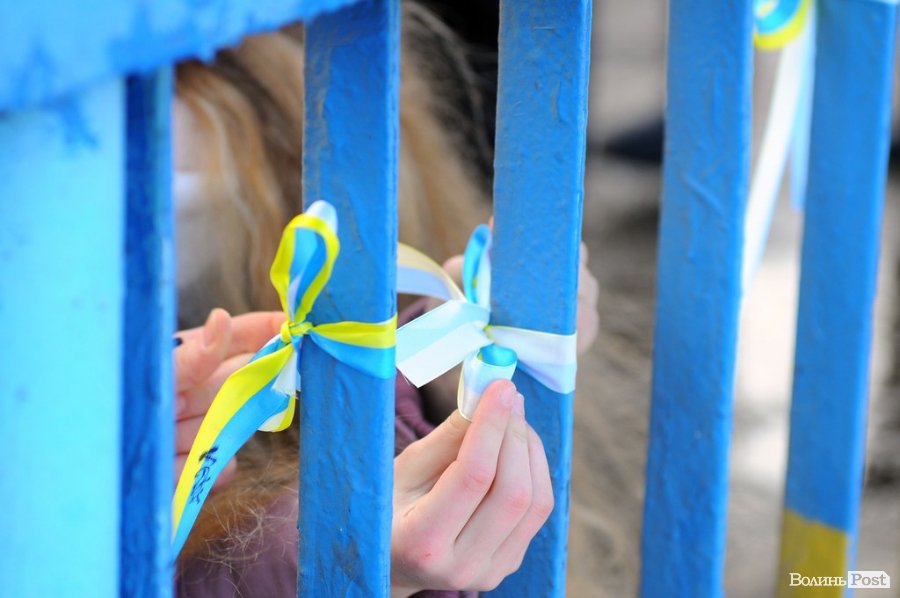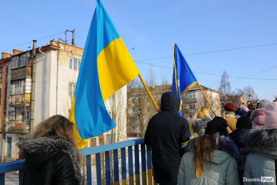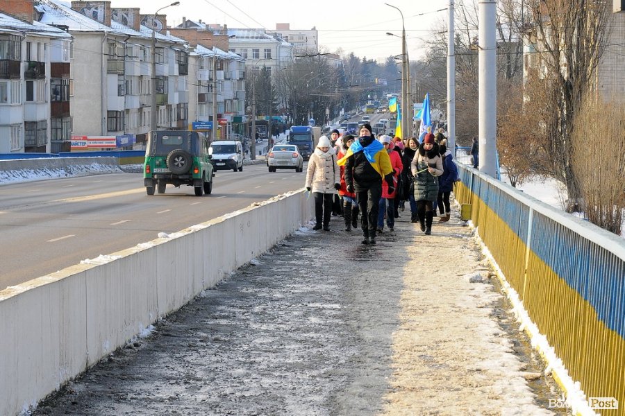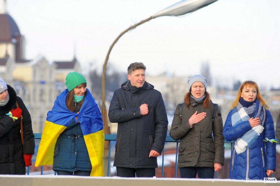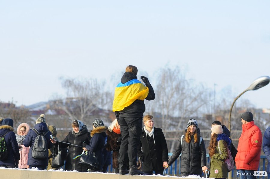 Символ єдності: у Луцьку на мосту створили живий ланцюг. ФОТО
