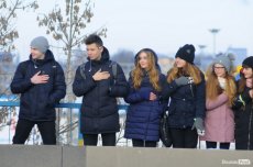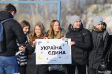 Із навчально-виховного комплексу №26 приїхала ціла «делегація». Заступник директора з виховної роботи Оксана Степанчук розповіла, що школярі часто долучаються до патріотичних дійств, а нинішнє свято особливо актуальне у час, коли йде війна, а українців намагаються роз’єднати.