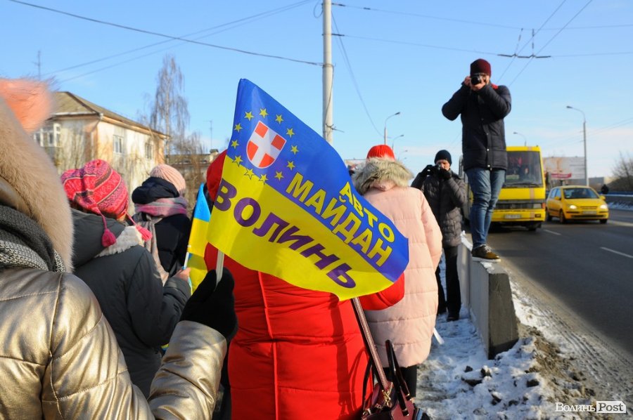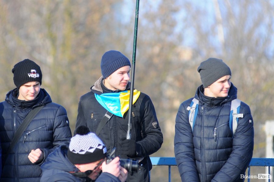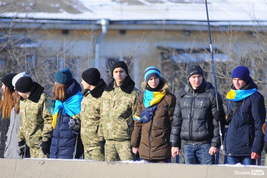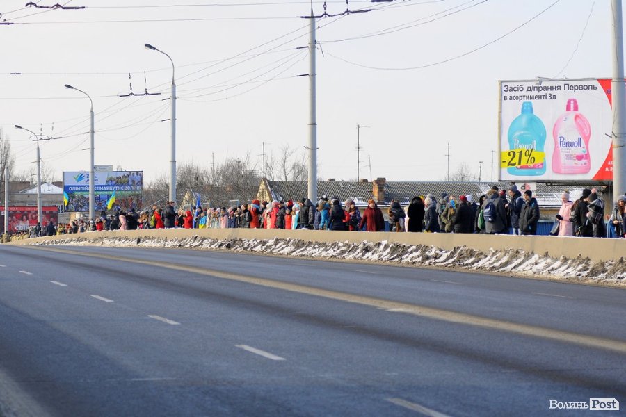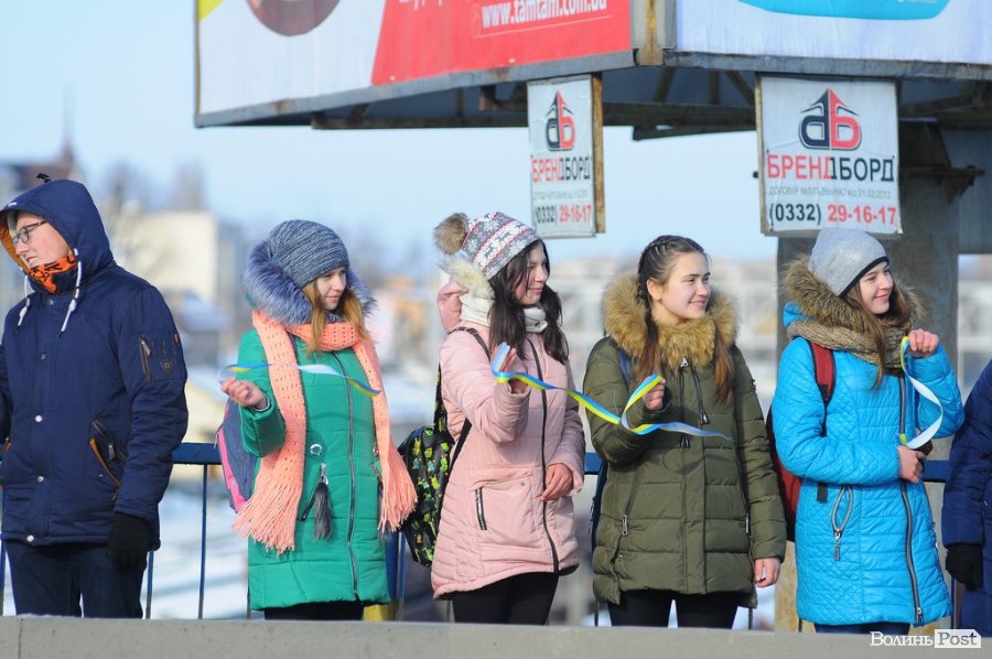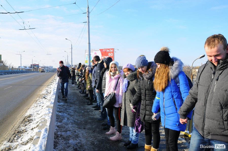 Тут зібралися школярі, студенти, курсанти із військового ліцею, активісти, політики та люди поважного віку, аби створити живий ланцюг - символ духовної єдності та свободи українського народу. Люди, прикрашені синьо-жовтими стрічками та озброєні прапорцями прямували на міст, аби взявшись за руки , створити живий ланцюг. Для когось нинішня акція – перша в житті, а хтось стає ланкою живого ланцюга далеко не вперше. Депутат Луцької міської ради Микола Федік розповів, що від 2008 року щорічно виходить на ланцюг єднання.