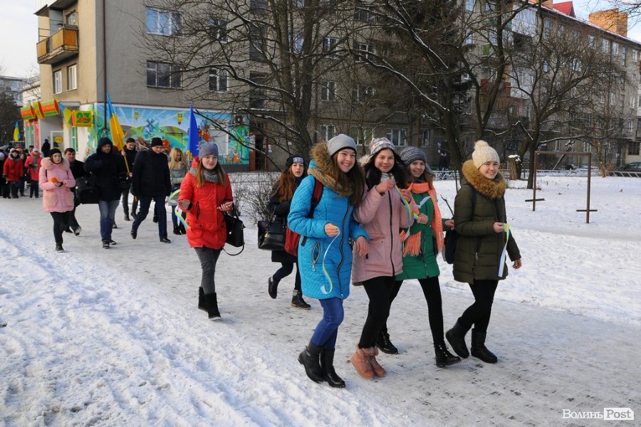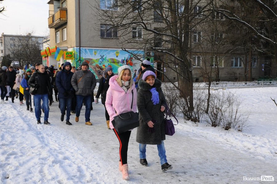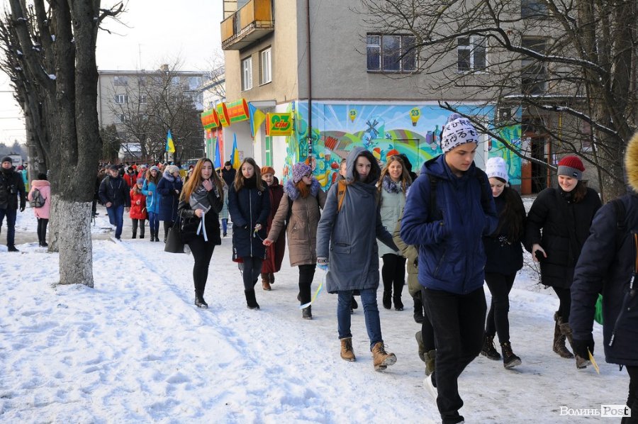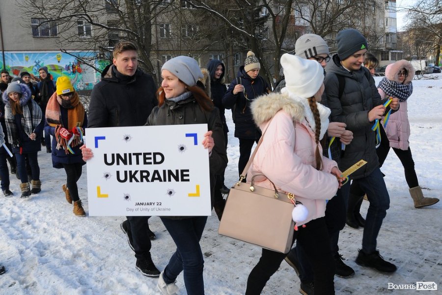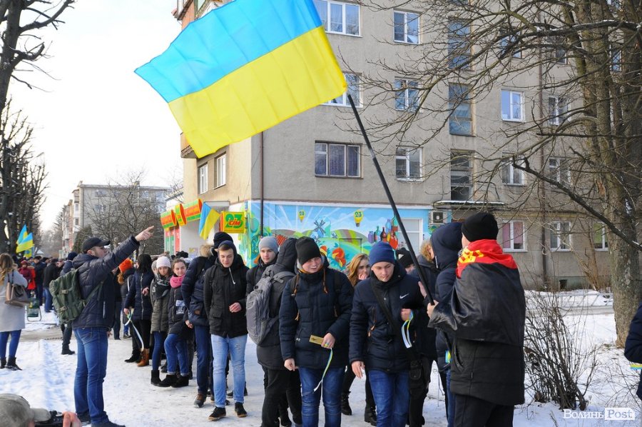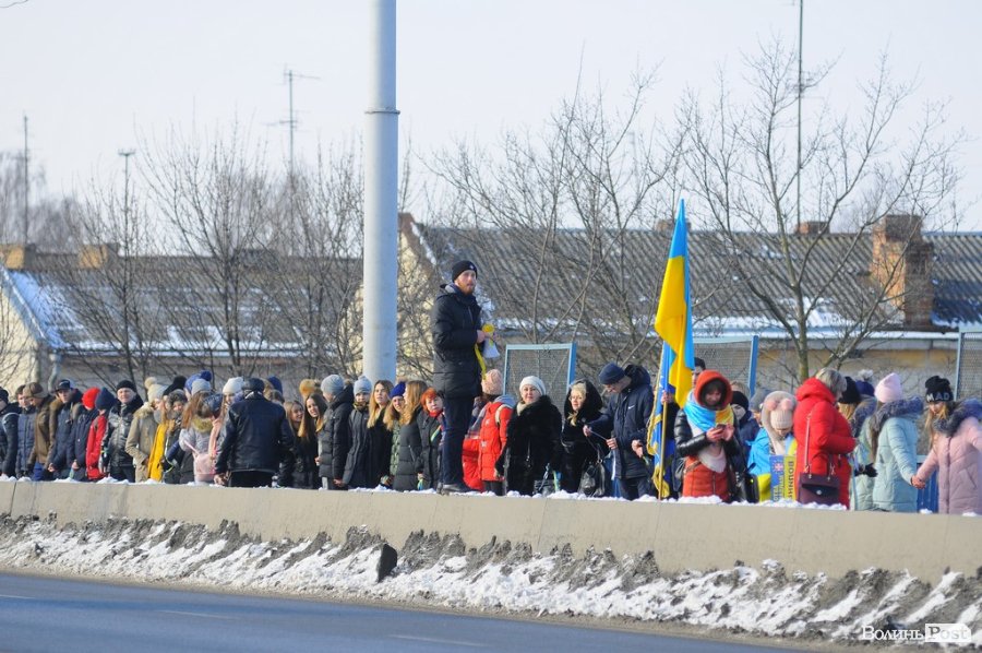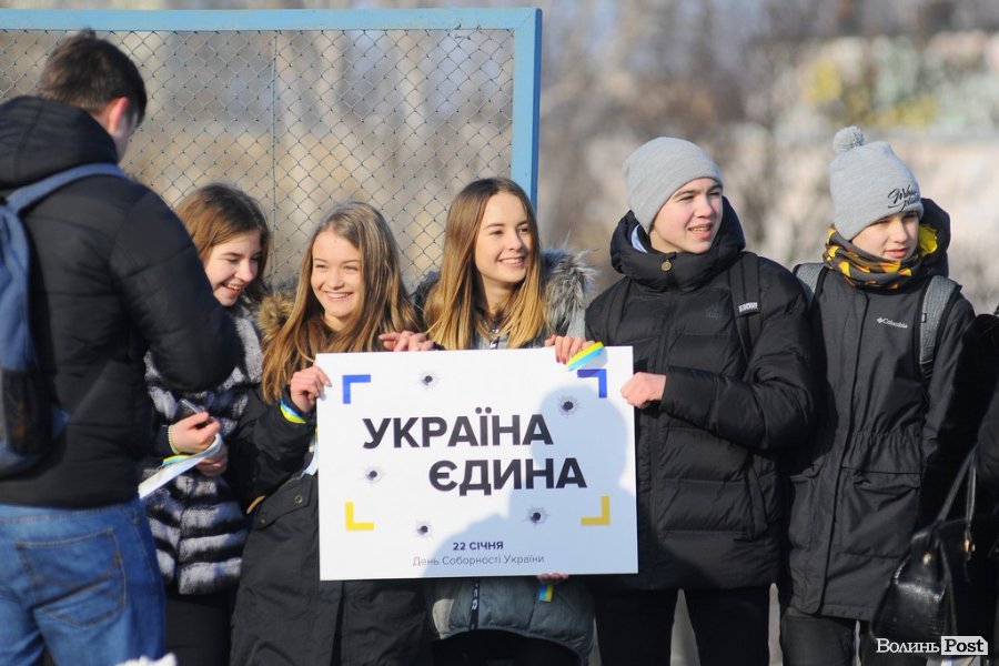 У Луцьку понад дві сотні активістів долучилися до акції «Живий ланцюг» - люди з національною символікою, взявшись за руки, виконали гімн. Таким чином, лучанам нагадали про важливі історичні віхи в історії української державності – ухвалення Четвертого Універсалу Центральною Радою та 22 січня 1919 року, коли Українська Народна Республіка та Західно-Українська Народна Республіка об’єдналися в одну державу.