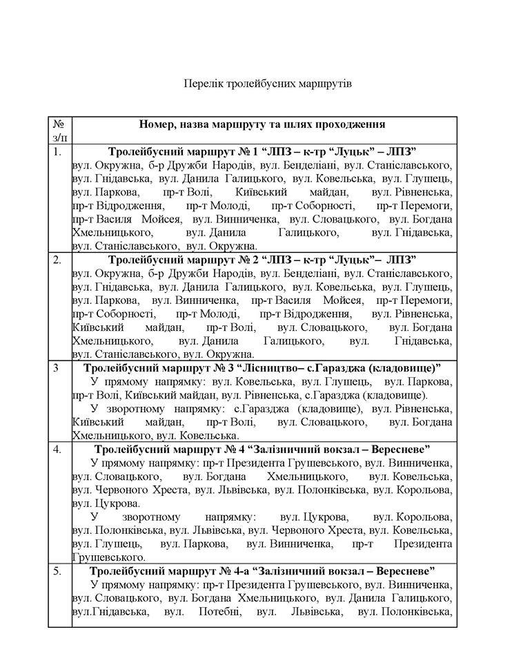 У Луцьку відбулися зміни у 4 тролейбусних маршрутах.