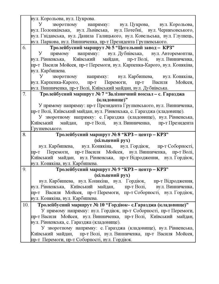 Зміни тролейбусної маршрутної мережі стосуються маршруту №6 «Вересневе – Київський Майдан» та 4-б «Залізничний вокзал – Вересневе» в частині його ліквідації через нерентабельність та продовження тролейбусних маршрутів №4 та №4-а «Залізничний вокзал – Львівська» до мікрорайону Вересневе.