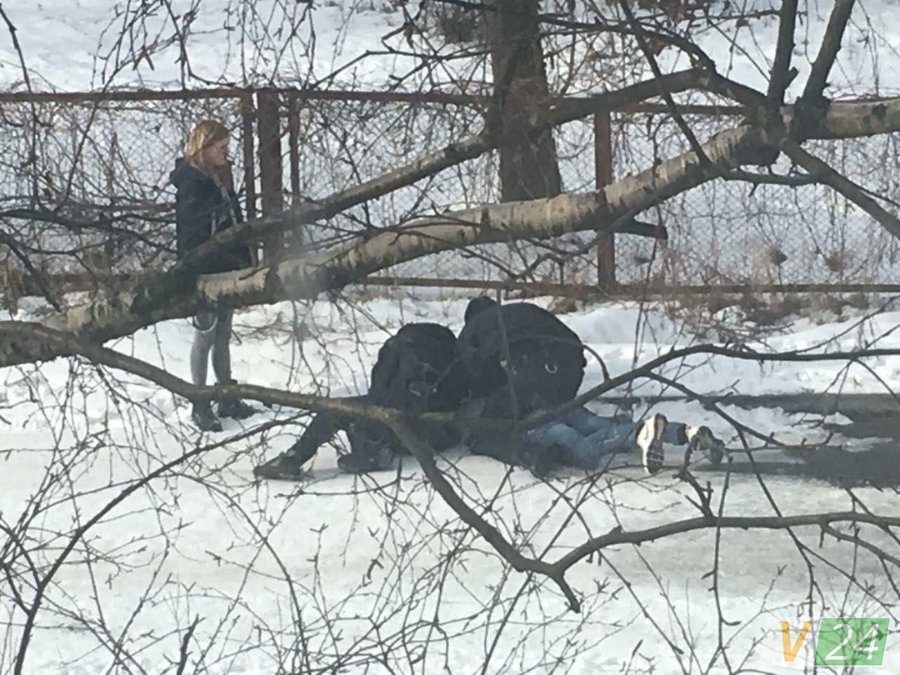 Правоохоронці декілька разів спробували його затримати, хапаючи за руку. Врешті хлопця піймали і скрутили. Коли хлопець зрозумів, що йому не вдасться втекти, він почав плакати.