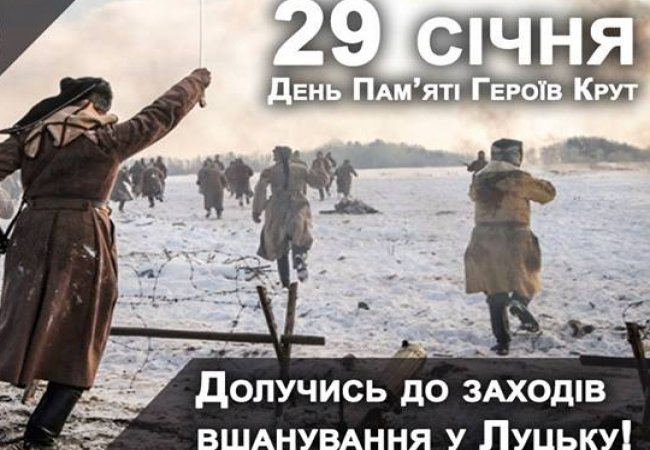 Крім того, Дня пам’яті Героїв Крут запланований флеш-моб. Охочих запрошують 29 січня о 17:00 прийти на Театральний майдан Луцька.