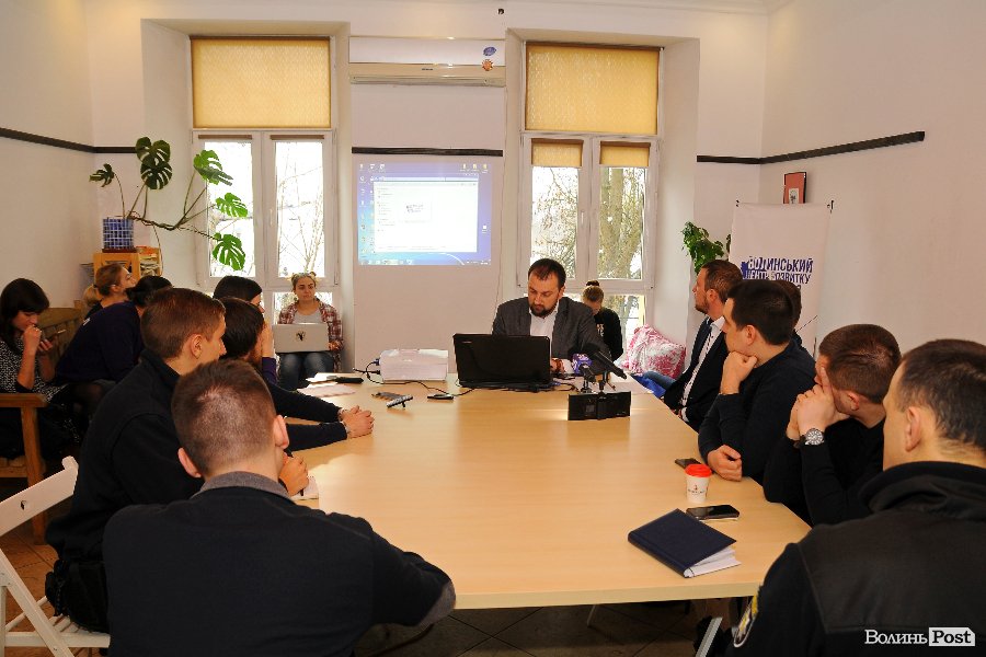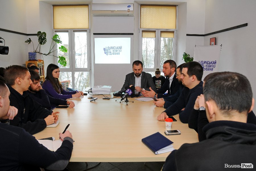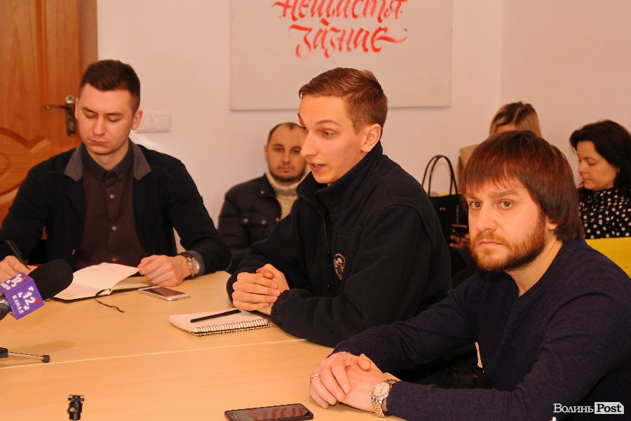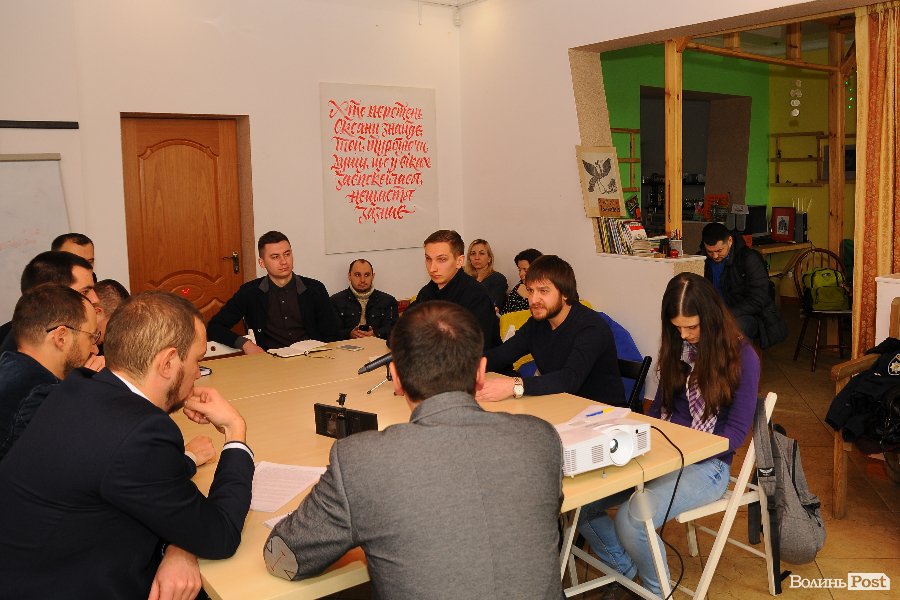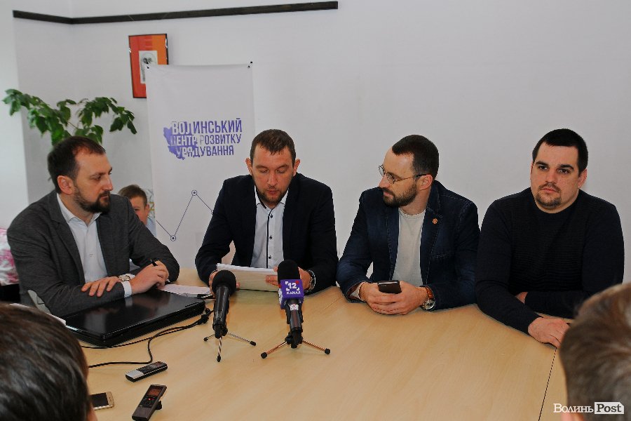 Експерти громадської організації "Волинський центр розвитку урядування" Тарас Яковлев, Сергій Григоренко та Юрій Моклиця та очільник "Нацкорпусу" Андрій Д'яченко