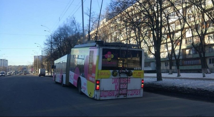 На вулиці Полярній у Києві тролейбус під час руху буквально розламався навпіл.