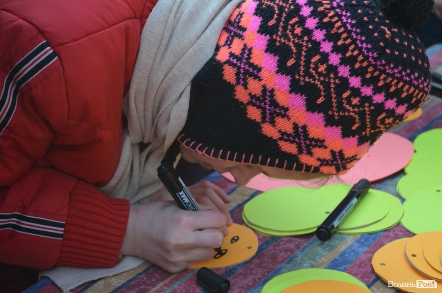 Працівники управління соціальних служб для сім'ї, дітей та молоді Луцької міської ради запропонували дітям залишити послання для тваринок чи намалювати смайлики. Тож незабаром яскраві шматочки паперу із мальованими усмішками прикрасили один зі знаків зоопарку.