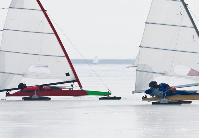 Товщина льоду нині сантиметрів 30. На кризі не лише рибалки, тут чимало лижників, хокеїстів, а ще тих, хто не боїться розгорнути вітрило.