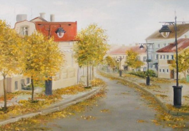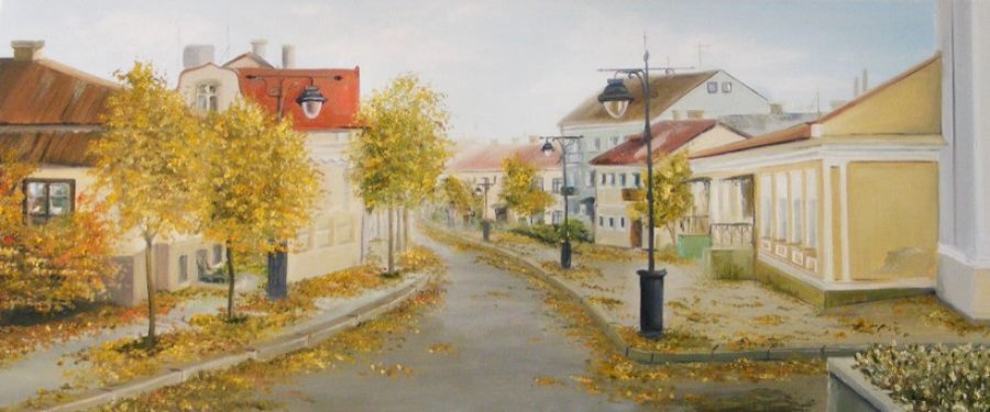 Третє полотно має назву «Осінь в старому Луцьку». Тут ми можемо впізнати вулицю Братковського, з якої розпочинаються багато екскурсій, що ведуть до нашого заповідника.