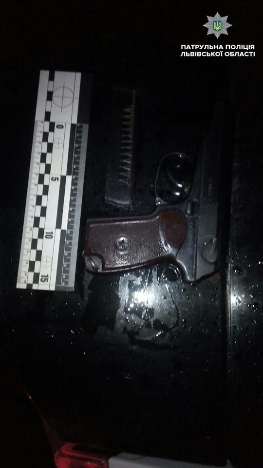 Транспортний засіб передали в орієнтування і на перетині вулиць Виговського-Городоцька виявили за кілька хвилин. Невідомим дали вказівку вийти з транспортного засобу із піднятими руками. В одного із них виявили під курткою предмет схожий на зброю, – розповідають патрульні.