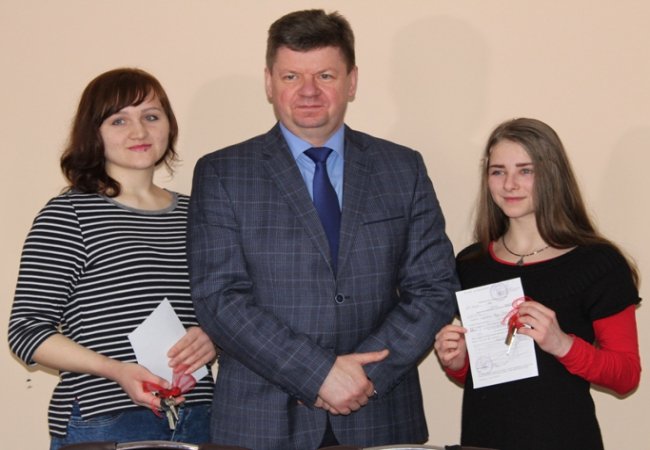 Так, сьогодні, 29 січня, відбулось урочисте вручення ключів від придбаних квартир Судюк Яні, випускниці Володимир-Волинської школи-інтернату, та Скубченко Надії, учениці ДНЗ "Нововолинський центр професійно-технічної освіти".