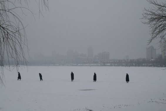 Співробітники Держохорони в штатському, які частково перекрили Оболонську Набережну у зв'язку з святкуванням Хрещення Господнього, пропонували киянам пробиратися до своїх домівок по замерзлому Дніпру.