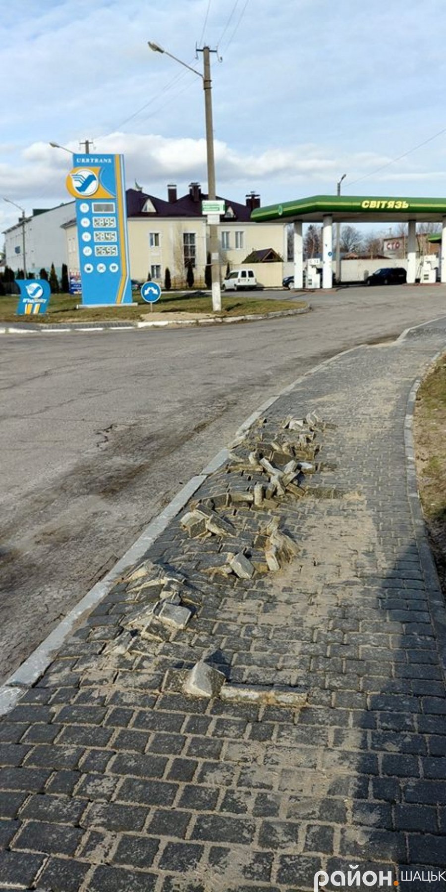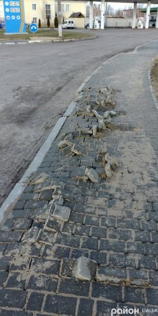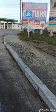 Транспорт, нашкодивши, з місця події поїхав, а от місцева влада вже «ламає голову», як полагодити тротуар майже в самому центрі селища.