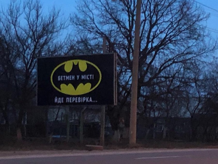 У Луцьку з'явилися білборди з зображення знаку вигаданого персонажу Бетмена та дивним написом.