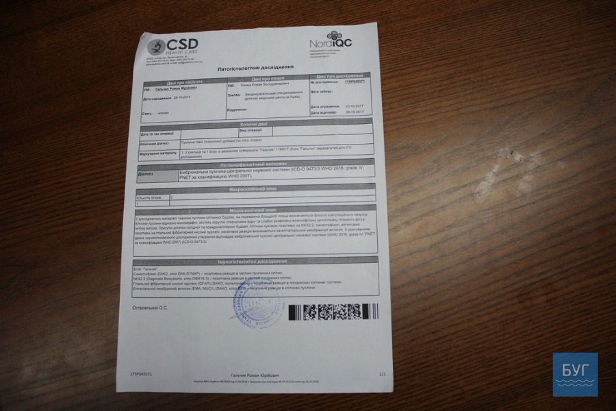 Батьки самостійно знайшли лікаря та у Києві в інституті нейрохірургії 18-го вересня 2017-го року Роман переніс першу операцію. Усю пухлину вирізати не вдалося, оскільки вона знаходиться біля життєво важливих органів. Далі слідували 3 курси хіміотерапії, які, на жаль, не допомогли. З діагнозом кистозно-солідна пухлина лівої тім’яно-потиличної ділянки головного мозку хлопчика готували до другої операції.
