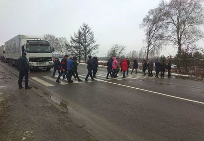 "Блокування руху транспортних засобів на автодорозі Київ-Ковель-Ягодин поблизу села Старовойтове на Волині, а це близько 1 км від пункту пропуску через кордон Ягодин, почалося о 09:40. Участь в блокуванні брали 30 осіб", - йдеться в повідомленні.