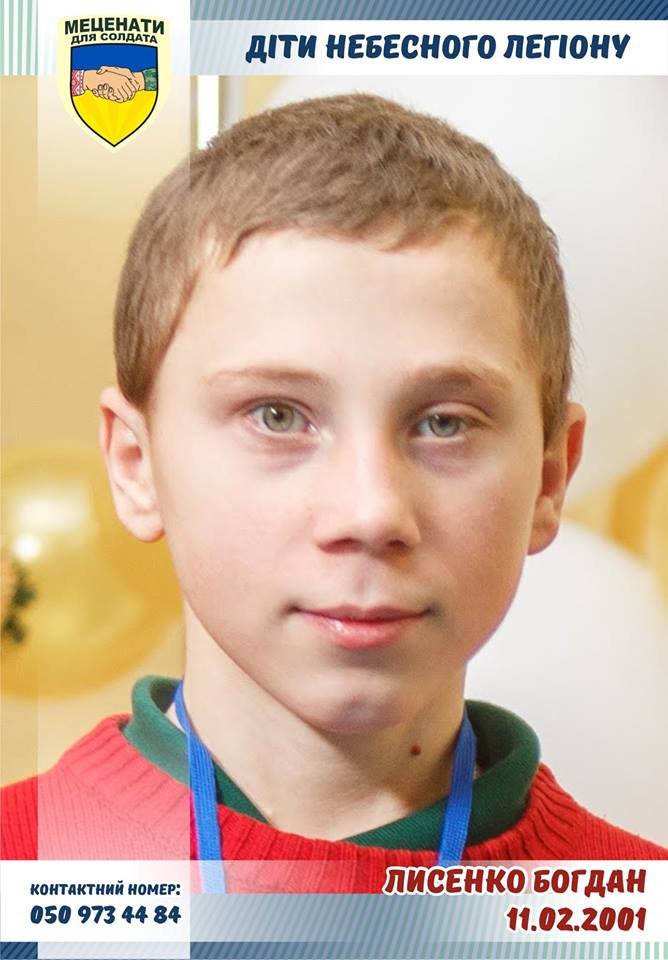 Інформація для благодійників: Богдан Лисенко – 17 років (11.02.2001). Ріст – 150. Розмір взуття – 37. Розмір одягу – 40.