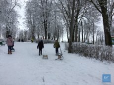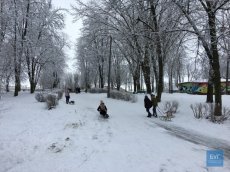 Так, 4 лютого, в неділю, снігом вкрилися дерева, дороги та все навколо. Діти та дорослі тішилися вихідним днем.