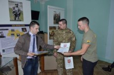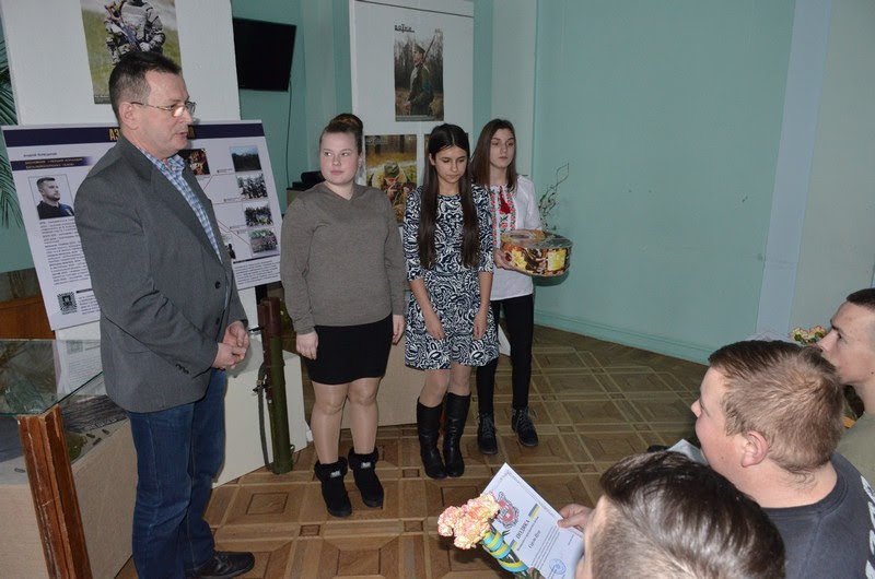Студенти гуртка «Всесвіт» Луцького педагогічного коледжу вручили учасникам АТО солодкий презент – торт, всім воякам дарували квіти.
