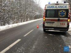 Рятувальники діставали водія з автівки за допомогою спецзасобів. Зауважимо, що дорога в тому місці повністю покрита льодом.