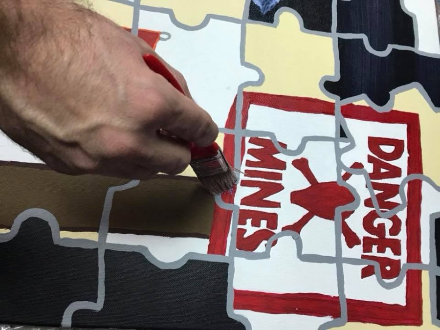 На виставці презентують 20 картин, в яких автор представляє бачення та переосмислення філософії війни.