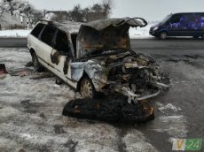 П’яний лучанин на Audi «врізався» в маршрутку, легковик загорівся. ФОТО