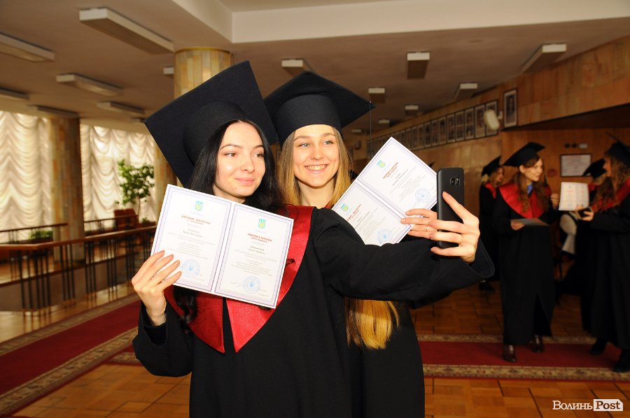 Батьки полегшено зітхали, а випускники у довгих мантіях робили селфі з дипломами, підкидали вгору свої капелюхи і ділились емоціями від завершення навчання.