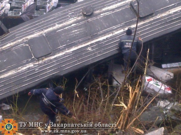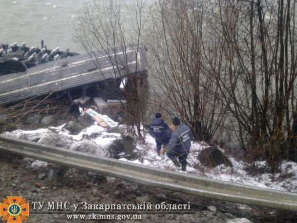 На Закарпатті на автодорозі Долина-Хуст в районі села Березове Хустського району рейсовий двоповерховий автобус "Вольво" сполученням Київ-Хуст з 8-метрової висоти впав у річку Ріка.