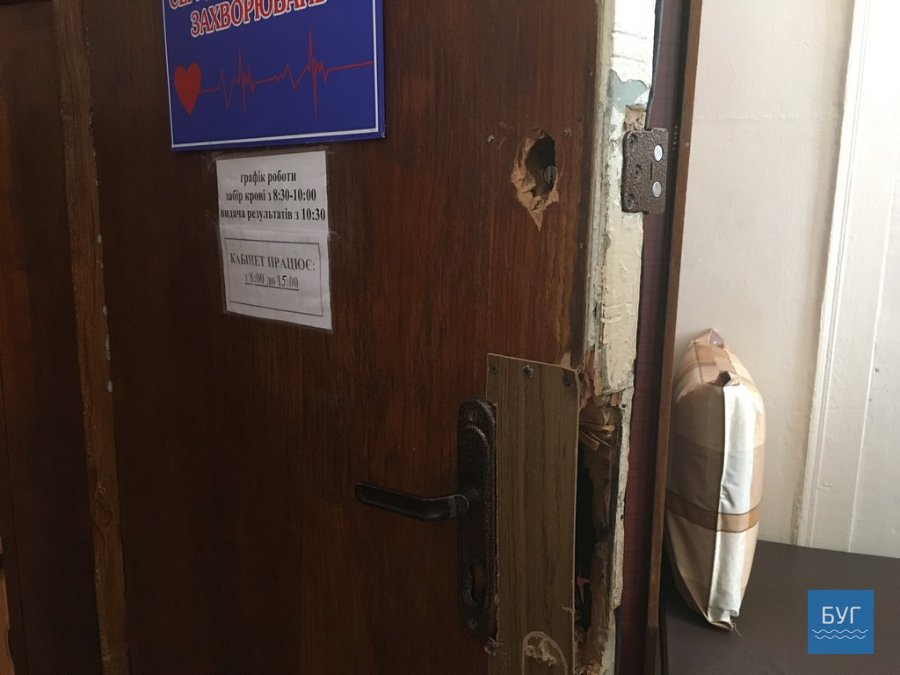 Заступник головного лікаря з поліклінічної роботи Наталія Щерба розповідає, що було пошкоджено 16 дверей на 1-му і 2-му поверхах та зламано 15 замків. У кабінетах наробили шороху, розкидали усі речі з шухляд. Із викраденого – лише старий мобільний Nokia, балансова вартість якого пару років тому була 280 гривень. Це був робочий телефон реєстратури.