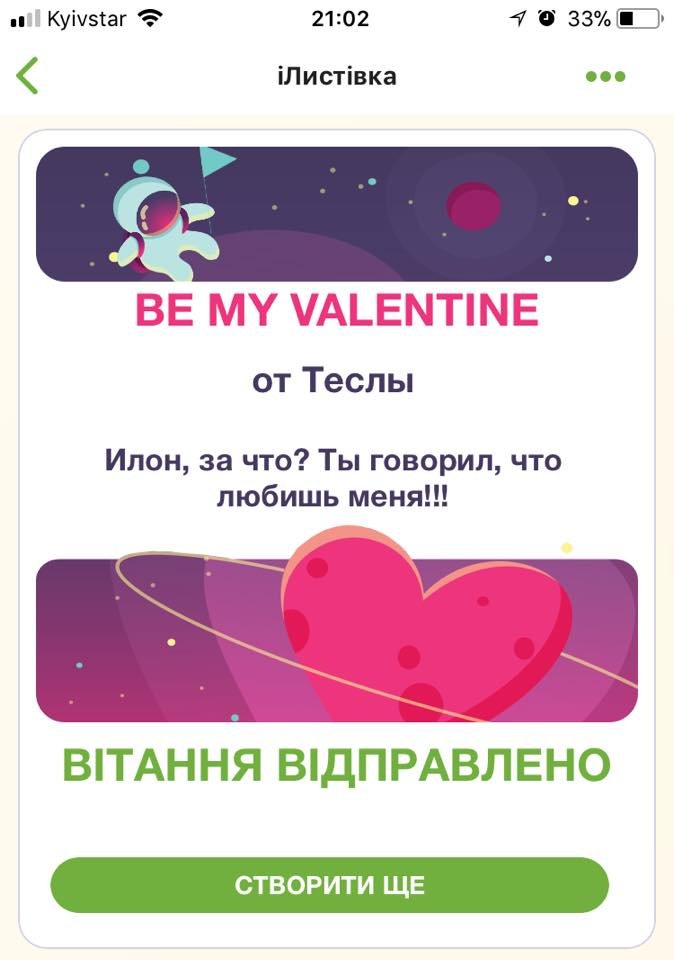 Усі користувачі мобільного додатка Privat24 на День святого Валентина зможуть безкоштовно обмінятися листівками.