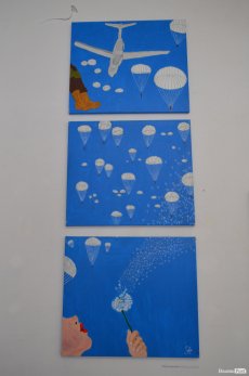 Маки, які виросли із солдатської каски, військовий, що стріляє трояндами, рука, що керує воїном-маріонеткою, - ці та інші зображення дали змогу присутнім по-іншому подивитись на війну, переосмислити своє життя та ситуацію в країні.