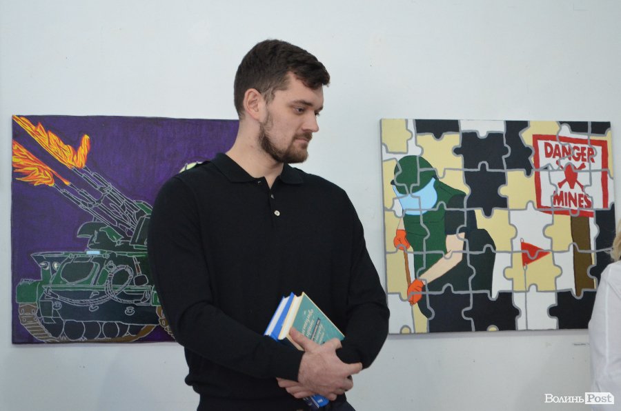 Атовець Андрій Соломін презентував у Луцьку серію картин «Парадокси війни». У неї увійшли два десятки полотен, над якими автор працював протягом року.