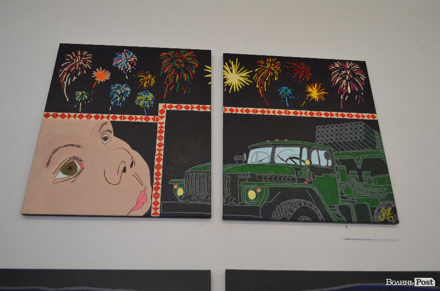 «Я хотів показати тонку грань між життям та смертю, між знищенням та розквітом. Мирне життя також небезпечне, як і військове. Побувавши там і пройшовши війну, ти бачиш мирне життя в інших кольорах», - розповів автор картин. Полотно, яке емоційно найближче Андрію, – те, де зображені гради, які мали б стріляти руйнівною силою, а натомість – феєрверки.