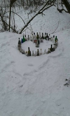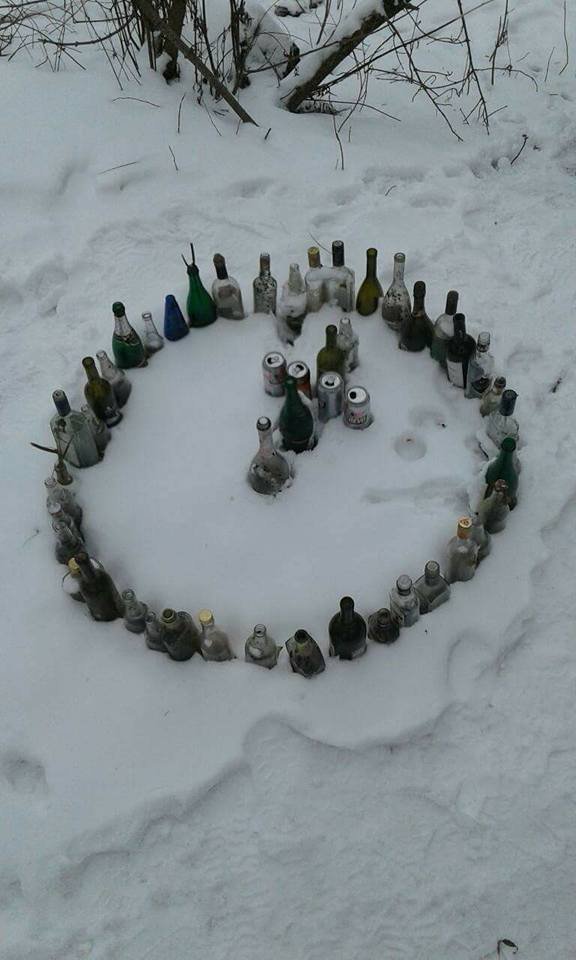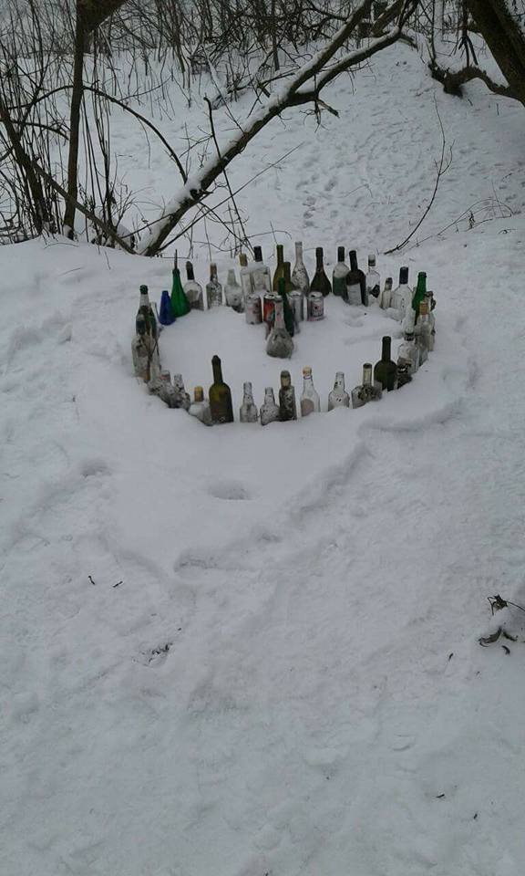 Поблизу річки Стир невідомі склали з пляшок коло, в середині якого розміщувався хрест.