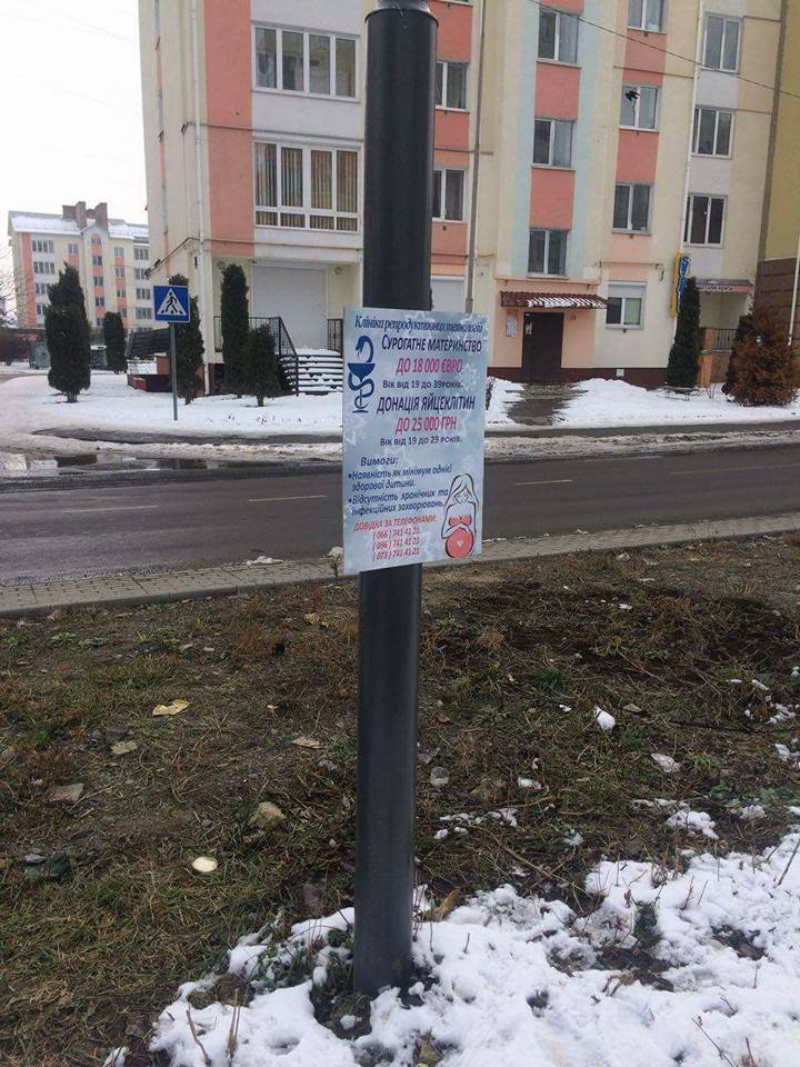 Вулиці Луцька знову заполонила незаконна реклама. Один з приватних медичних закладів «загадив» місто незаконними оголошеннями про сурогатне материнство.
