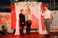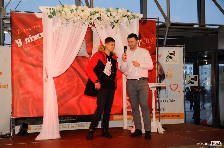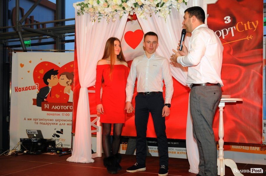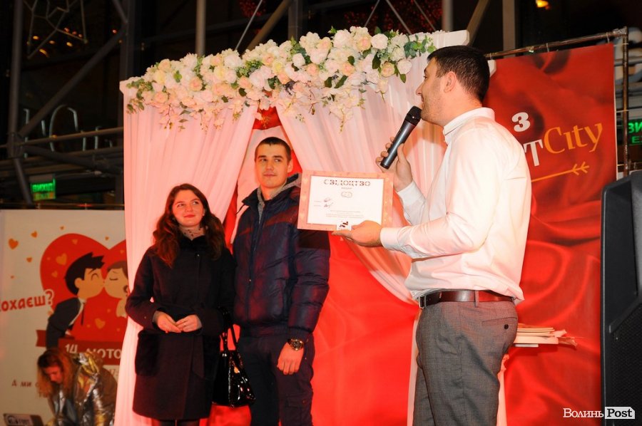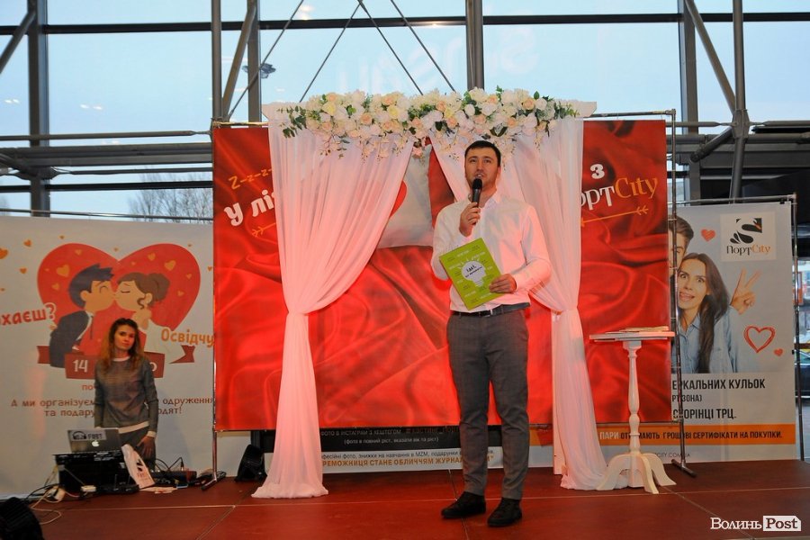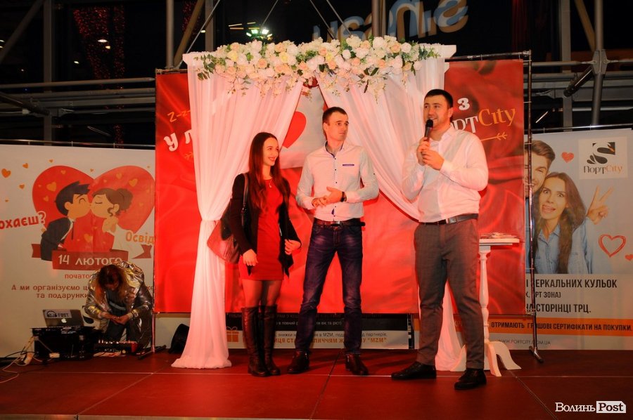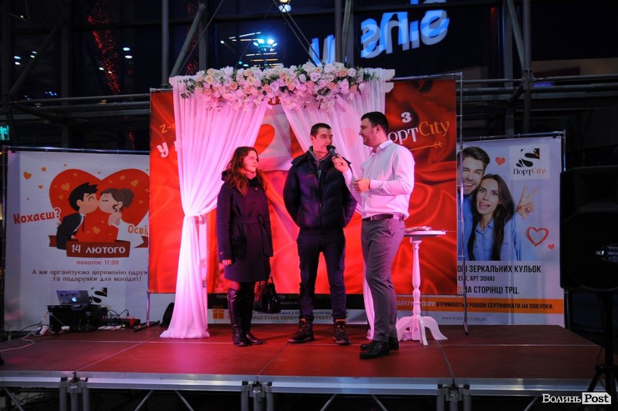 Керував церемонією ведучий Олександр Львовський. Найсміливіші пари виходили на сцену, хлопці і чоловіки говорили передвесільні обіцянки, ставали на коліна та пропонували своїм коханим вийти за них заміж. У разі згоди надягали на руки обручки, розписувались у відповідних документах, отримували свідоцтво про одруження та подарунки від ТРЦ.
