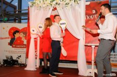 Виходили на сцену навіть ті, хто ще не знайшов пару або у День закоханих опинився далеко від своєї половинки. Вони бажали присутнім кохання, щастя, усмішок, квітів, миру та достатку. Відвідувачі закладу робили знімки біля тематичних фотозон, отримували повітряні кульки від аніматорів та просто спостерігали за церемонією віртуального одруження.