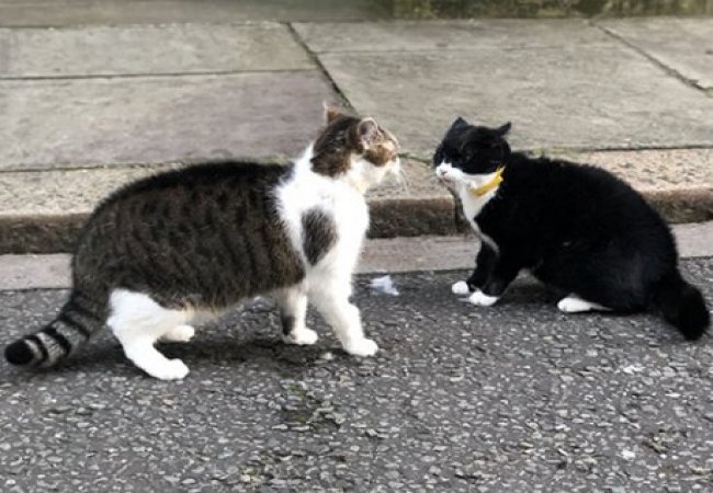 Кіт Ларрі з офісу прем'єр-міністра Великобританії Терези Мей вже не вперше побився з котом з МЗС Палмерстоном. Користувачі Twitter назвали сцену «метафорою Brexit».
