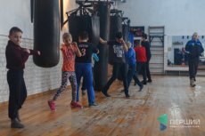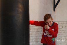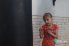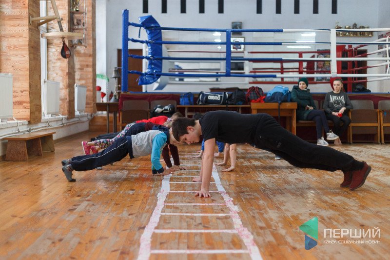 У залі тренуються зовсім юні бійці. За процесом уважно спостерігає та вболіває лучанка Тетяна Іксанова, яка віддала на тренування шістьох своїх дітей, одна з яких - дівчинка.