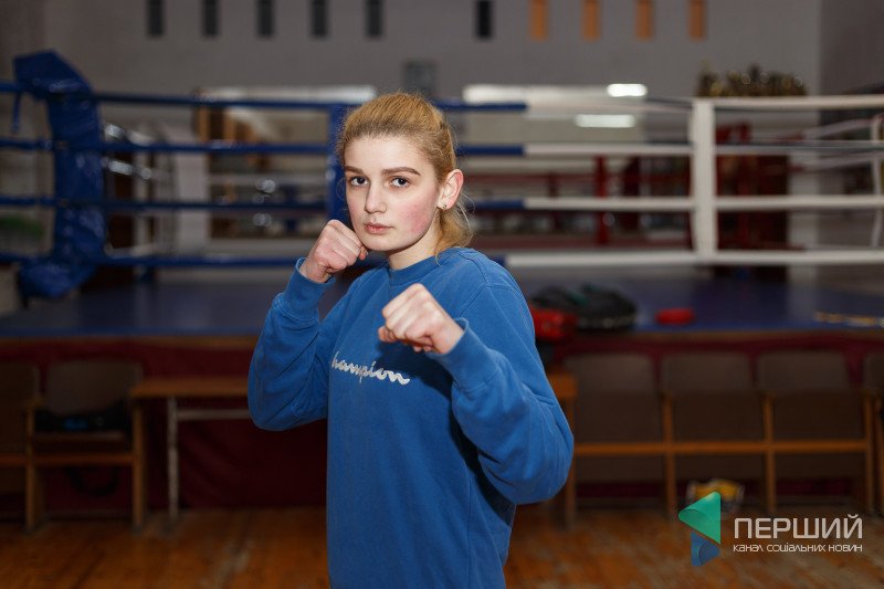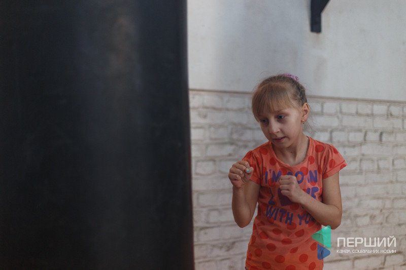 Тим часом, у залі інтенсивно та з великою силою «лупцює» грушу кікбоксерка Яна Глушко, яка прийшла в кікбоксинг за рекомендацією свого друга і вже три роки займається цим видом спорту.
