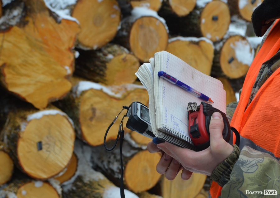 За допомогою кишенькового персонального комп’ютера сканує її і завантажує файл в єдину систему електронного обліку деревини.