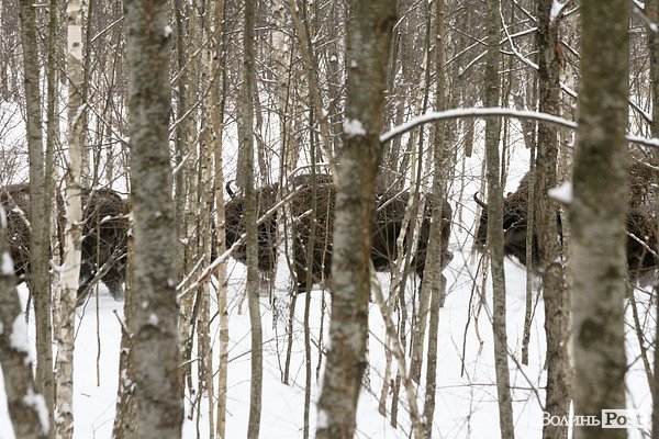 Працівники мисливського господарства влаштували прогін тварин. Під час цього репортеру ВолиньPost Олександру Котису вдалося сфотографувати тварин, в тому числі й близько 10 зубрів.