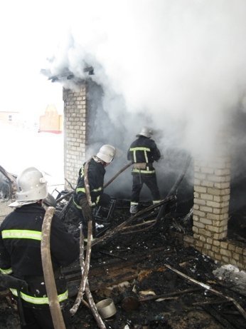 Виклик пожежникам надійшов о 13:34. Коли рятувальники приїхали на місце, побачили, що вогонь охопив дах цегляної господарської споруди та автівку, що стояла поруч на вулиці.