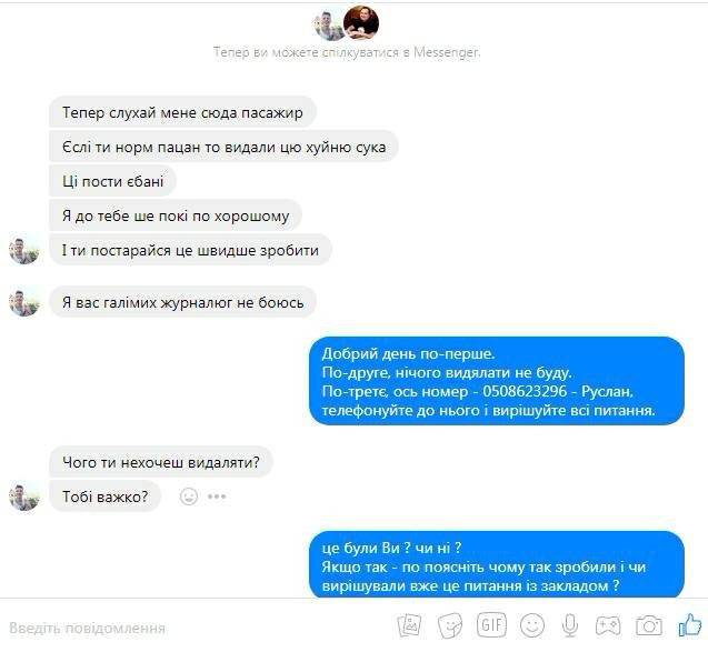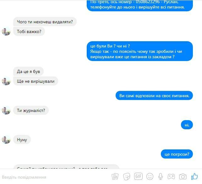 "Публікую перепису з "дитиною" котра "помилково" розрахувалася вчора не тими грошима у Бар П'ятниця. Одна чесність та порядність, а не хлопчик. п.с. А по телефону спочатку взагалі казав що то все дівчина. Ну-ну", - прокоментував "бесіду" Андрій Мацкевич.