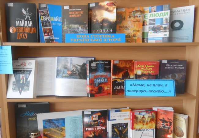 На виставці представили літературу історичних подій зими 2013-2014 років та імена героїв «Небесної Сотні».