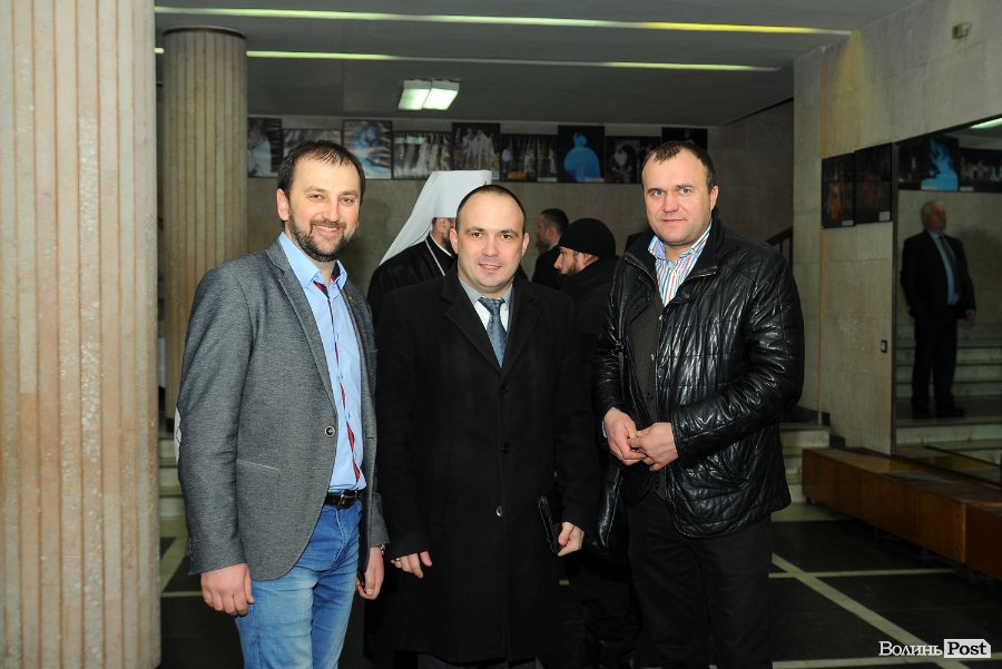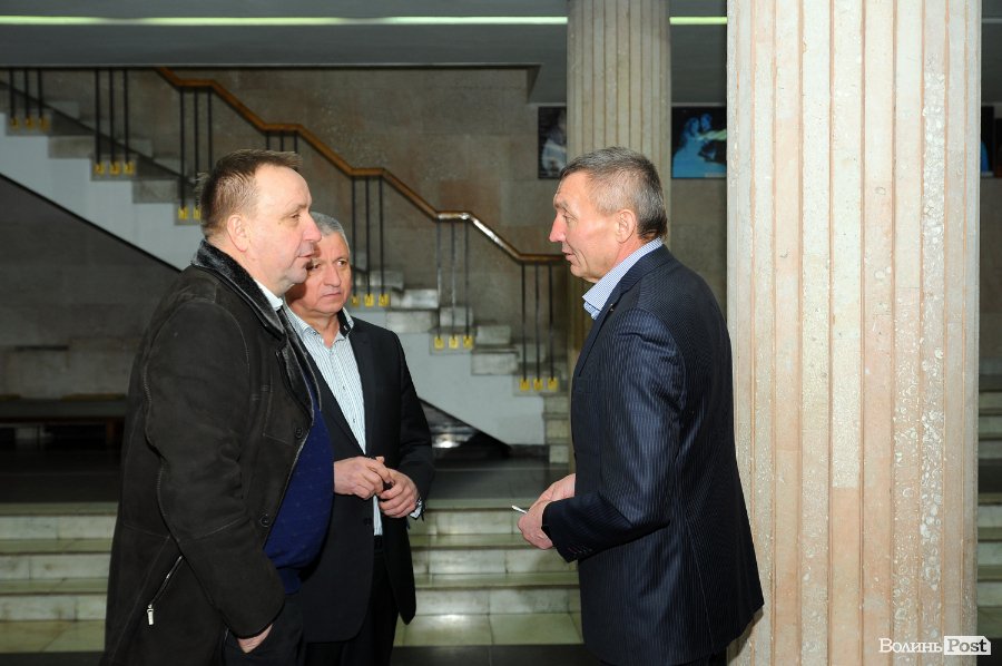 Радник голови Волинської ОДА Тарас Яковлев, керівник обласного центру зайнятості Роман Романюк та голова луцького осередку Солідарності Петро Нестерук
