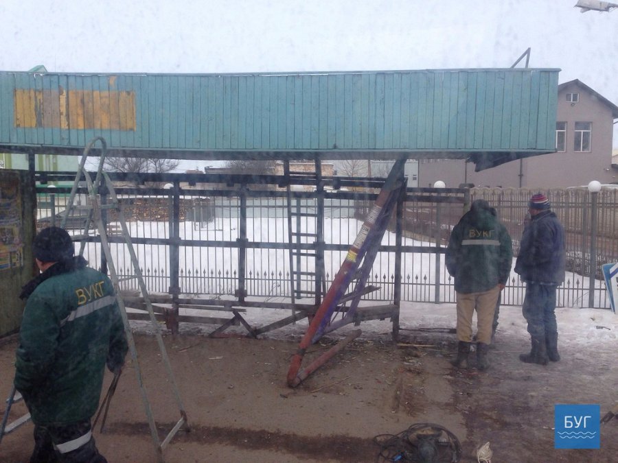 Комунальники розбирають у Нововолинську зупинку «4 шахта», яку розтрощив невідомий автомобіль.