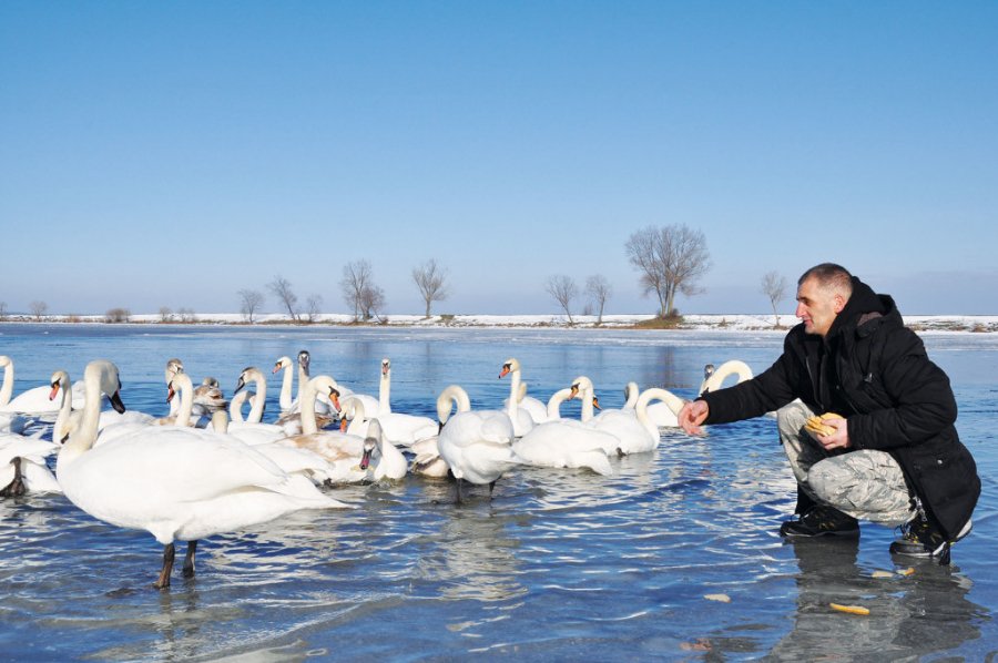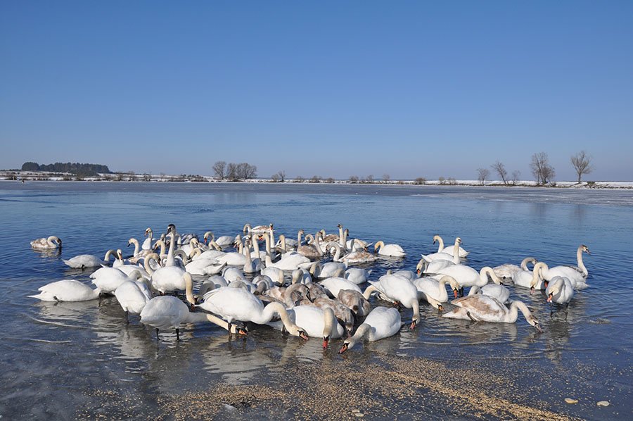 Ось тільки орнітологи не рекомендують годувати щедро птахів хлібом, від якого у лебедів може захворіти шлунок. Хіба що можна кидати їм білий хліб, але найкраще годувати посіченими овочами, кукурудзою та пшеницею. Можна давати їм і рибу. А ось зерно найкраще сипати на лід, а не у воду.