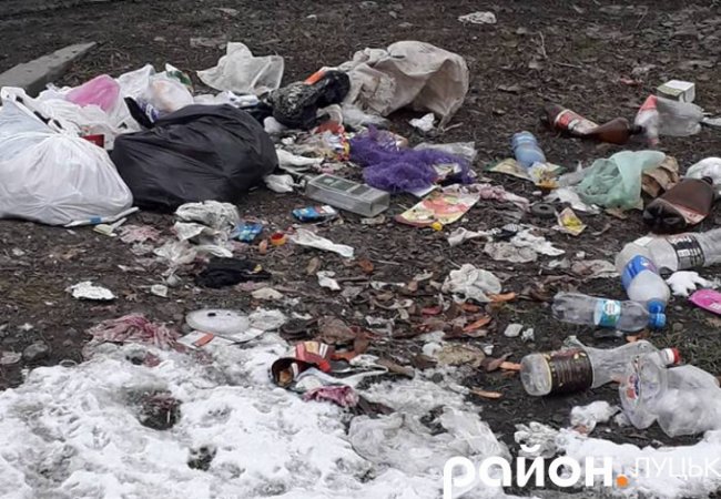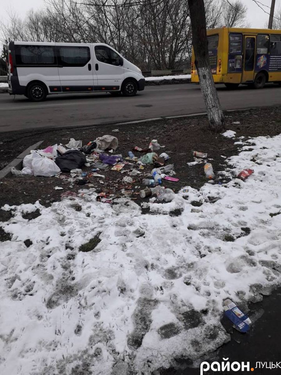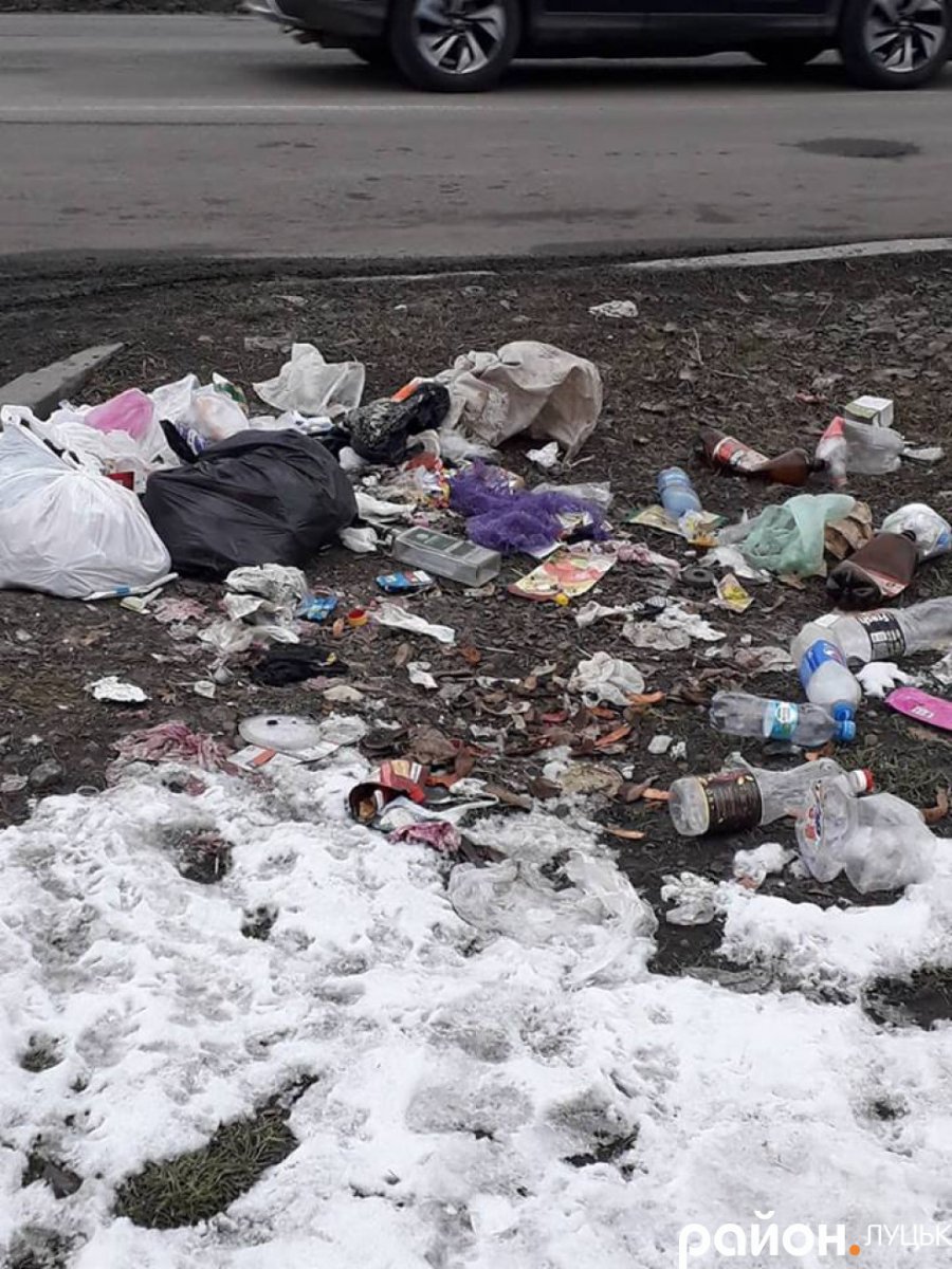 Прямо біля проїзджої частини лежать пляшки, папірці, поліетиленові пакетики й пакети зі сміттям.