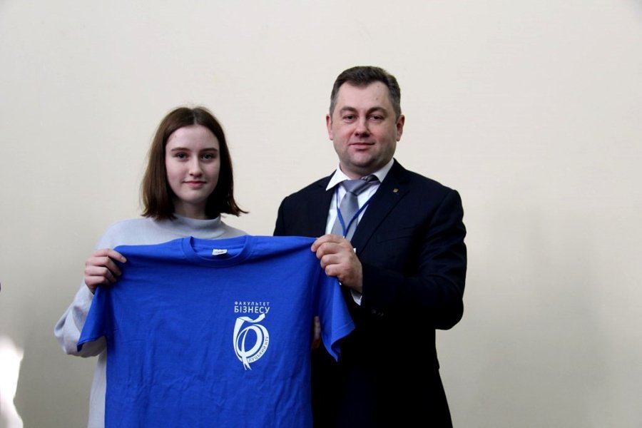Розважити юних науковців вдалося й завдяки розіграшу, адже вибірковим методом четверо учнів отримали фірмові футболки факультету бізнесу.